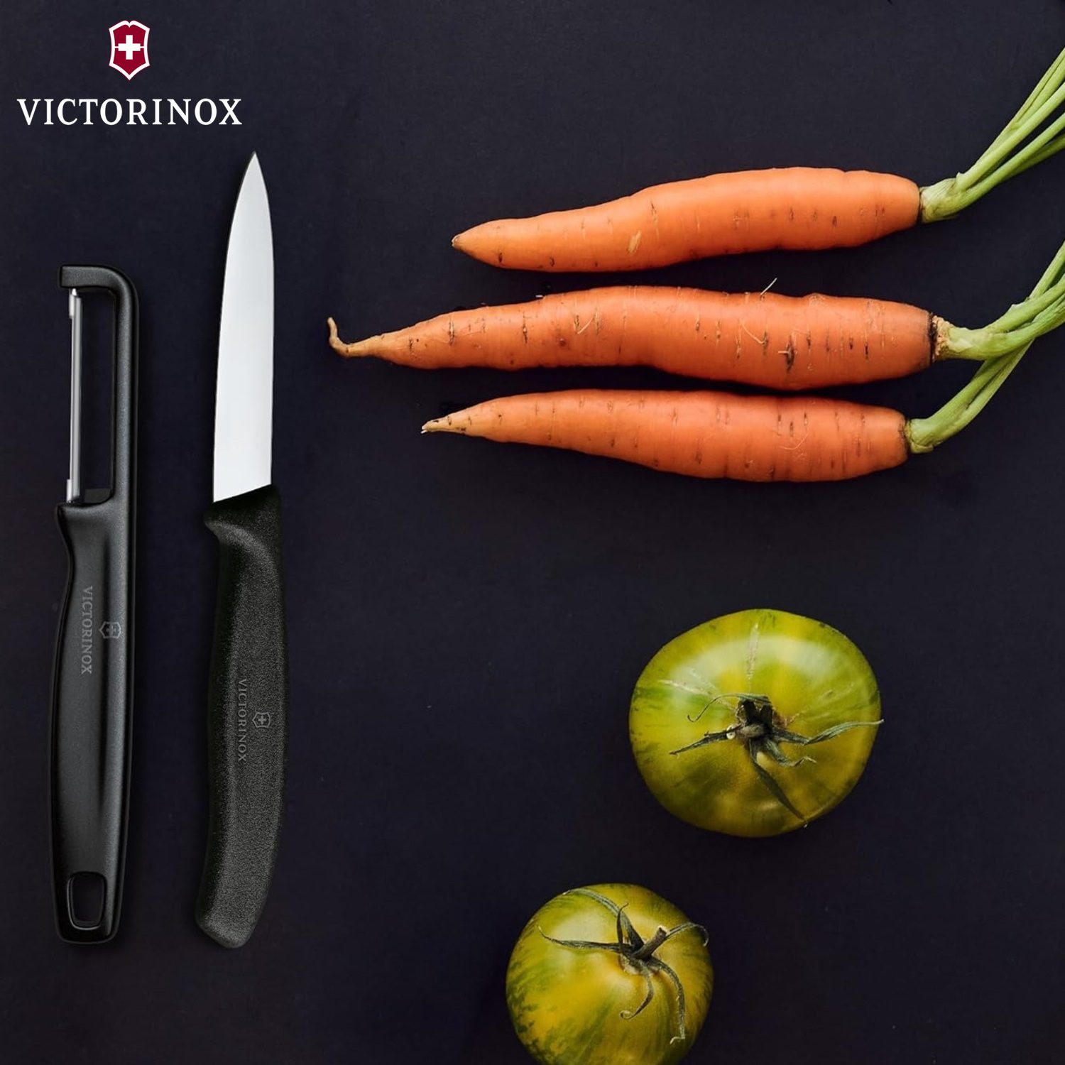 Το καλό μαγείρεμα ξεκινάει με πολύ ξεφλούδισμα! Ο αποφλοιωτής IOTA της Victorinox είναι ελβετικής κατασκευής και διαθέτει ανοξείδωτη περιστρεφόμενη μικροδοντωτή διπλή λεπίδα, αμφίδρομης χρήσης, είναι ιδανικός για φρούτα και λαχανικά με μαλακή φλούδα όπως οι ντομάτες ή τα ροδάκινα, ξεφλουδίζει με ευκολία μία μικρή στρώση φλοιού αφήνοντας την σάρκα ανέπαφη. Η εργονομική ίσια λαβή του κατασκευάζεται από ανθεκτικό πολυπροπυλένιο (PP) ασφαλές στην επαφή με τα τρόφιμα και ταιριάζει σε αριστερόχειρες και δεξιόχειρες, είναι κατάλληλος για πλύσιμο σε πλυντήριο πιάτων και παρέχεται με εγγύηση εφ’ όρου ζωής.