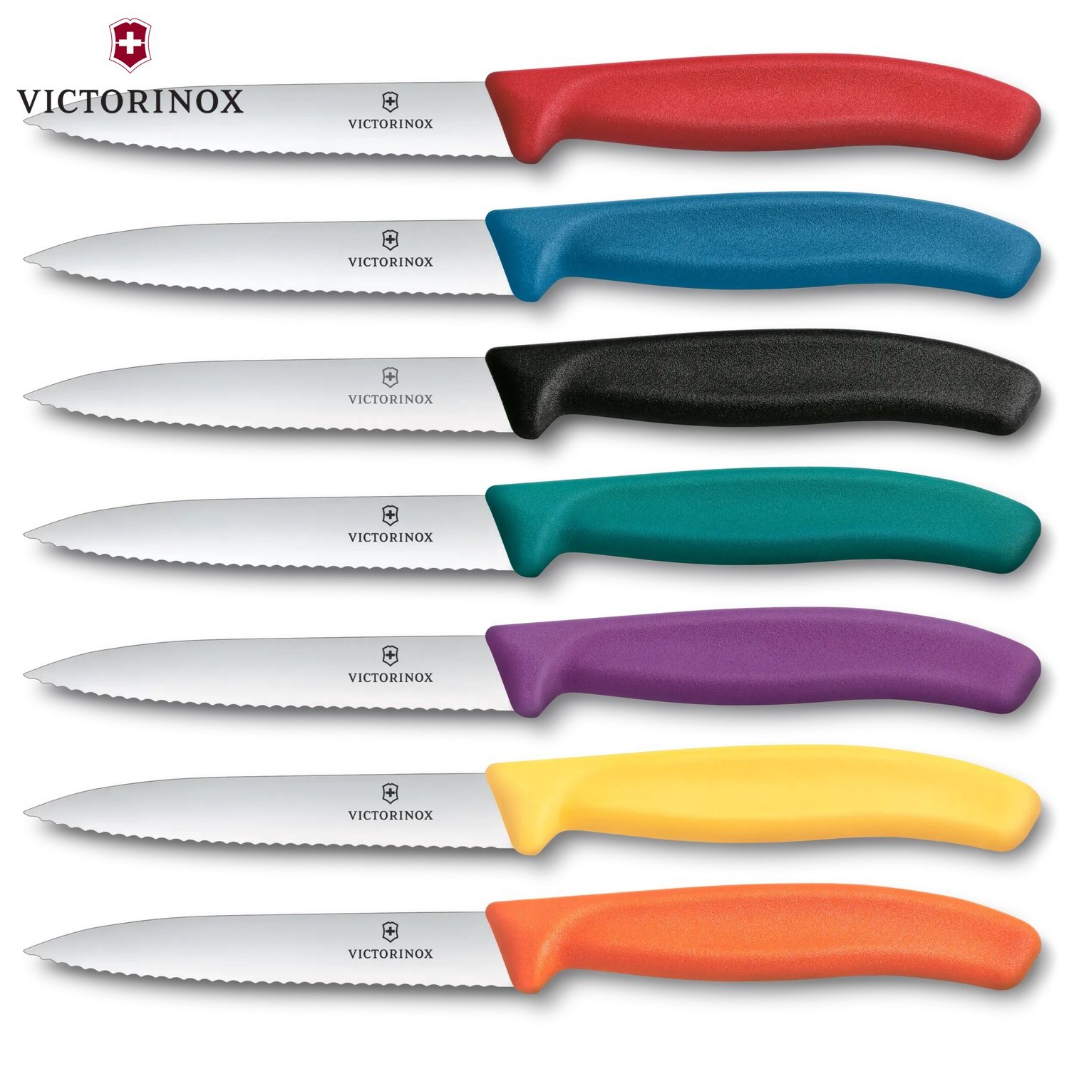 Η σειρά μαχαιριών γενικής χρήσης Swiss Classic της Victorinox καλύπτει όλες τις καθημερινές ανάγκες της κουζίνας για την κοπή, αποφλοίωση, διακόσμηση των λαχανικών αλλά και την χρήση στο τραπέζι, διατίθονται σε ποικιλία λεπίδων και χρωμάτων, είναι κατασκευασμένα από υψηλής ποιότητας ανοξείδωτο ατσάλι και εργονομική λαβή από πολυπροπυλένιο ασφαλές στην επαφή με τα τρόφιμα, πλένονται στο πλυντήριο πιάτων και παρέχονται με εγγύηση εφ’ όρου ζωής για οποιοδήποτε υλικό ή κατασκευαστικό ελάττωμα.