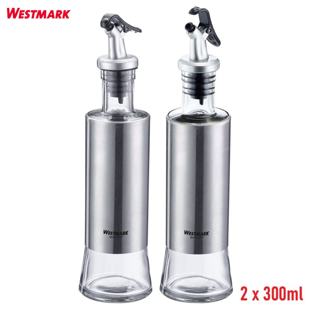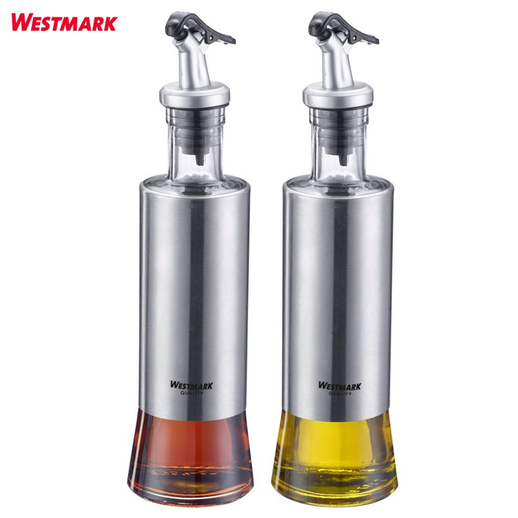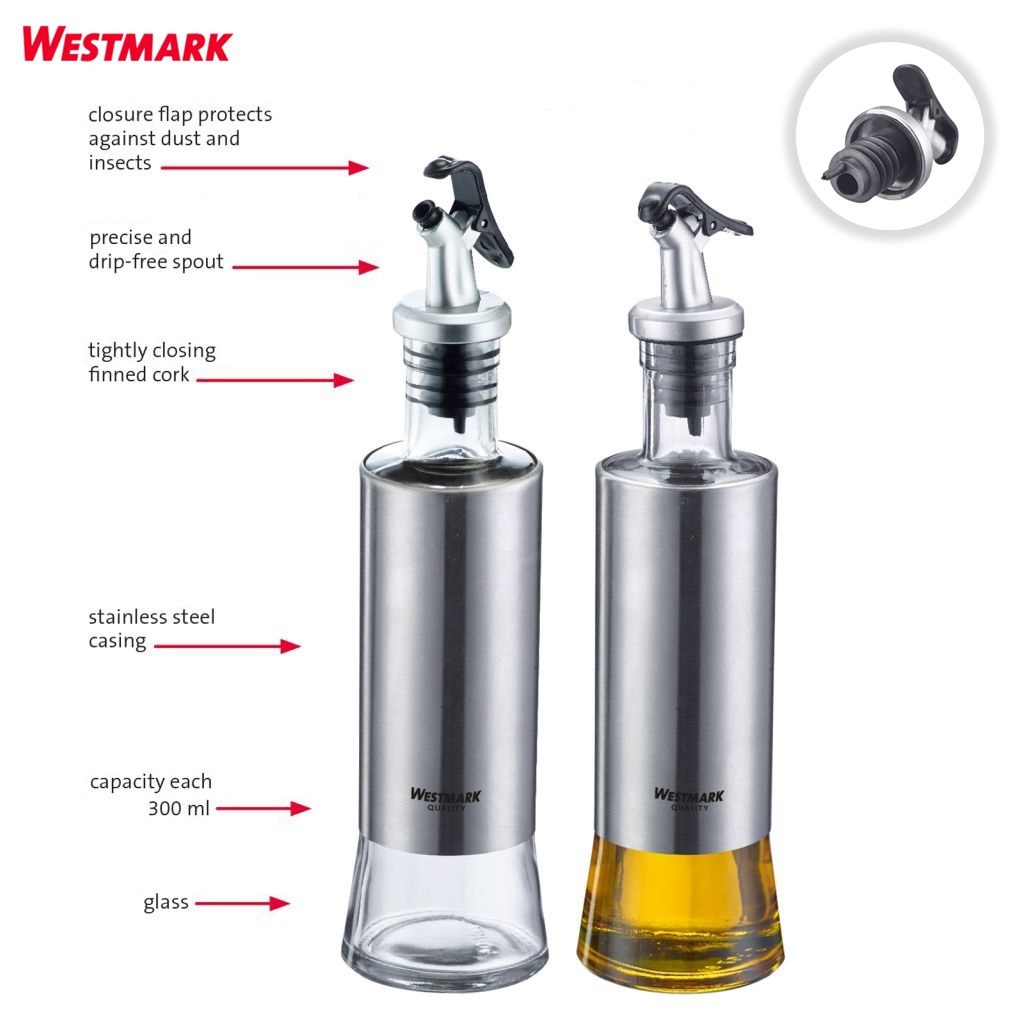 Σετ 2 φιάλες των 300 ml γιά λάδι και ξύδι Lissabon Westmark, κατασκευασμένες με γυάλινο δοχείο πλήρωσης και περίβλημα από ανοξείδωτο ατσάλι, διαθέτουν ασφαλή στεγανοποίηση με φελλό από TPE και ροή με εύχρηστο κλαπέτο από ABS, διατίθενται με 5 χρόνια εγγύηση.